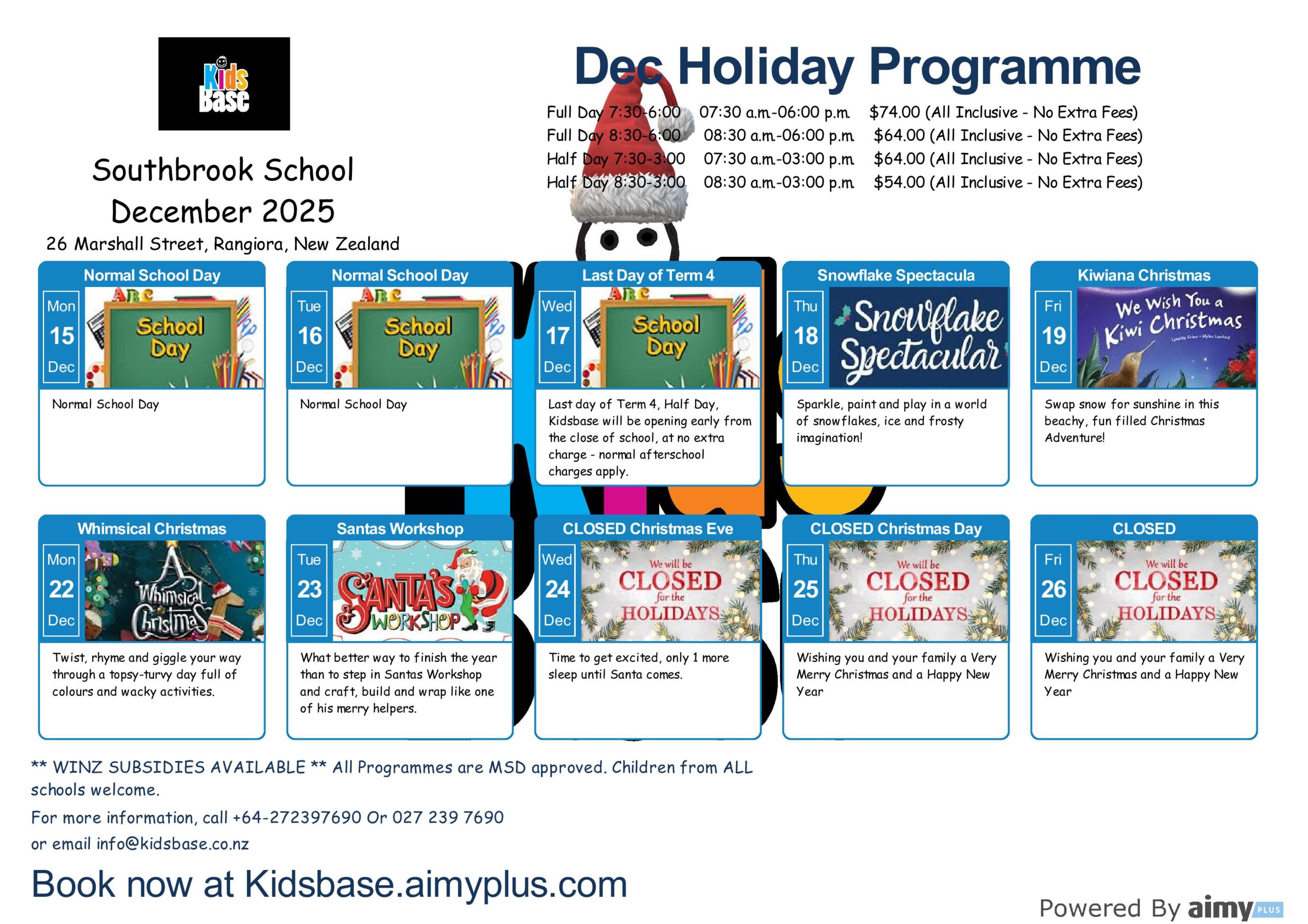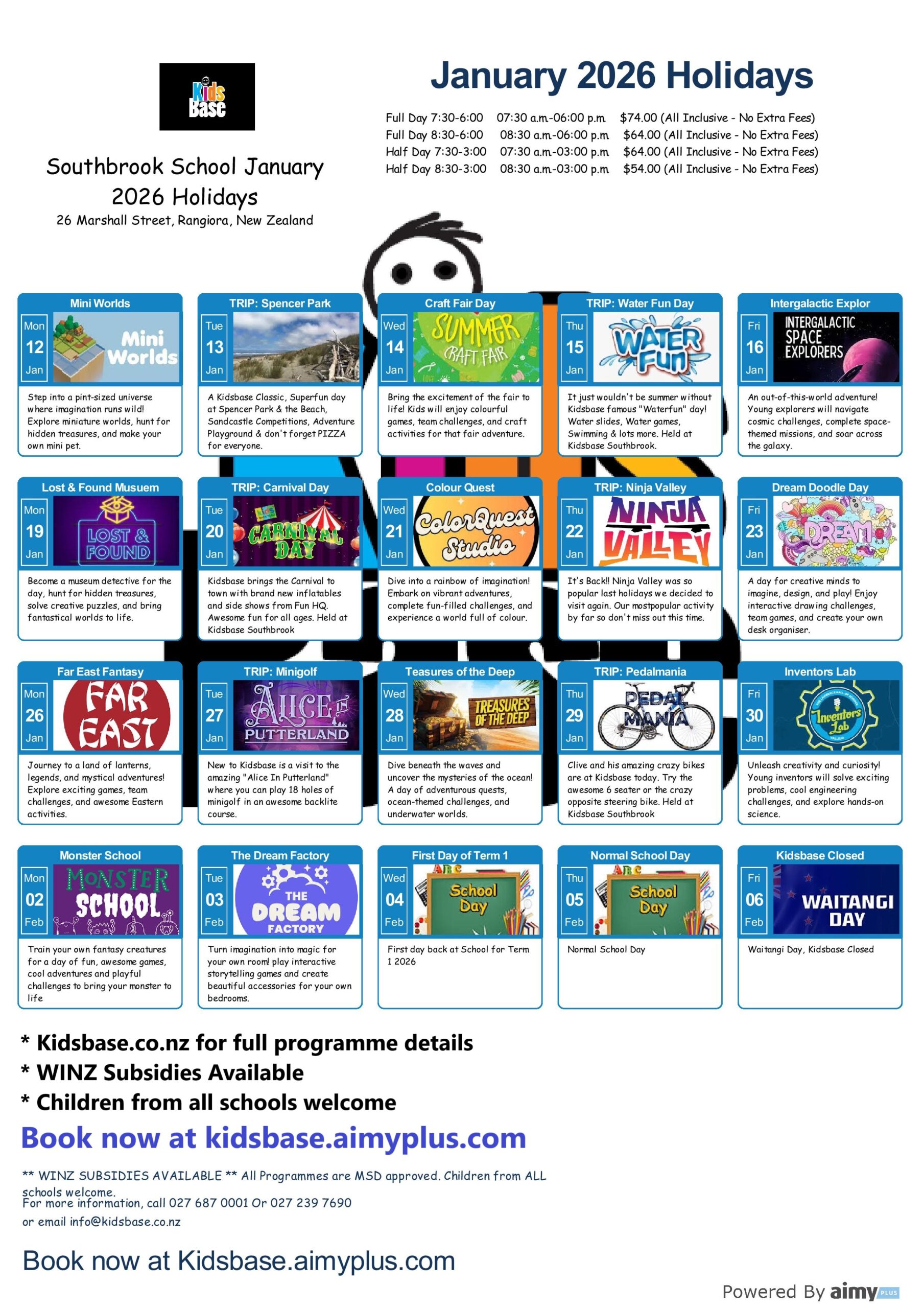 Kidsbase Southbrook also offers Before School, Afterschool & School Holiday programmes for the families of: